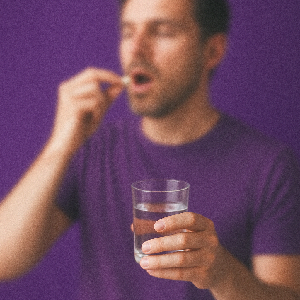 The standard recommendation is to take two capsules per day — preferably one in the morning and one in the evening — with a full glass of water.